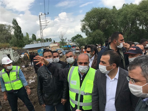 DSİ 24. Bölge Müdürü Mahmut Dündar, “Söz konusu incelemeler sırasında Kurumumuz ile ilgili hususlarda alınan ve alınacak tedbirler, yapılan ve yapılacak çalışmalar ve önem arz eden hususlarla alakalı Sayın Valimize gerekli bilgilendirmelerde bulunuldu. Vatandaşlarımıza geçmiş olsun dileklerimizi ve imkanlarımız çerçevesinde onlara gerekli desteği vereceğimizi ve yanlarında olacağı iletildi. Selim Başköy Köyündeki taşkında 10.000 yılda gelmesi muhtemel taşkın olan 60 m3/s debi nedeniyle dere yatağının tamamı neredeyse yan yamaçlardan da dere yatağına sürüklenen taşlarla tamamen dolmuştur. Olay anından itibaren DSİ ve İl Özel İdaresi imkanlarıyla gerekli incelemeler, makineli müdahale yapılmış ve aralıksız devam etmektedir. Aynı zaman sürecinde Sarıkamış Ortakale, Kağızman Çayarası, Akyaka Karahan köylerinde de meydana gelen taşkınlara gerekli müdahalede bulunulmuştur. Bu önemli taşkın olaylarında can kaybının olmaması en büyük teselli olmuştur. Ancak ev, ahır ve arazilerde meydana gelen zararlarla alakalı Sayın Valimizin talimatıyla ilgili kurumlarımız tespitlerini yapmaktadır. Tüm vatandaşlarımıza geçmiş olsun dileklerimizi iletir. Allah beterinden hepimizi muhafaza eylesin.” dedi.