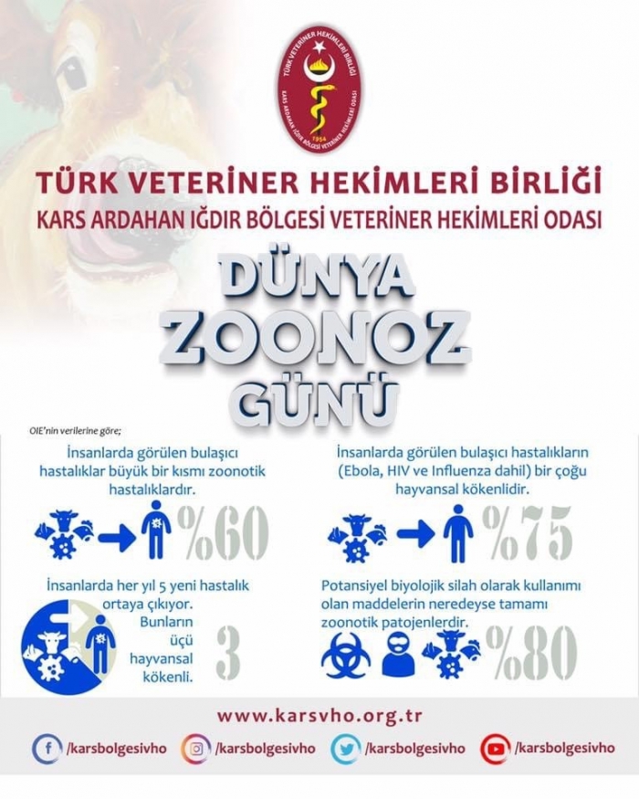 Kars Ardahan Iğdır Bölgesi Veteriner Hekimleri Odası Başkanı Ercan Ödül’ün 6 Temmuz Dünya Zoonoz Günü açıklaması.