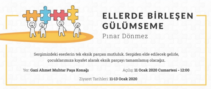 Pınar Dönmez’in “Ellerde Birleşen Gülümseme” sergisi bugün (11 Ocak 2020) Gazi Ahmet Muhtar Paşa (GAMP) Konağı’nda saat: 12.00’de açılacak.