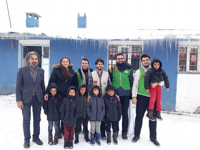 İzmir Genç İHH ve Kadın Kolları, İzmir'de başlattıkları "Minik Yürekler Üşümesin" projesi kapsamında lise ve üniversitedeki gönüllülerle yaptığı çalışmayla tespit edilen Kars Sarıkamış Eşmeçayır İlkokul ve Ortaokulunda 240 minik öğrenciye bot ve mont dağıttı.