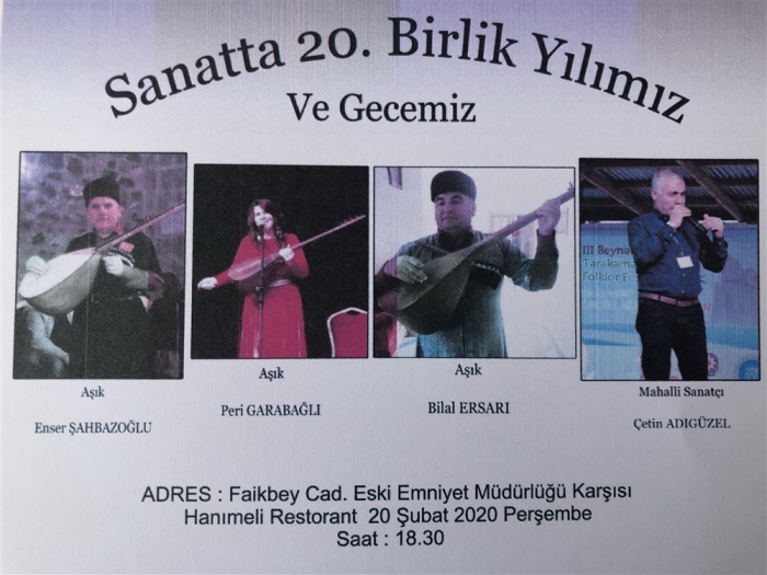Karslı halk ozanları Bilal Ersarı, Ensar Şahbazoğlu, mahalli sanatçılar Çetin Adıgüzel ve Azerbaycanlı sanatçı aşık Peri Garabağlı “Sanatta 20. Birlik ve Gecesi” düzenliyor.