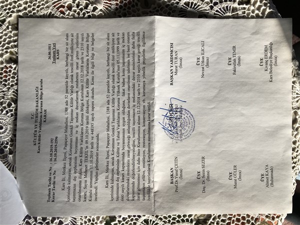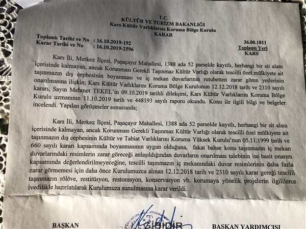 Kars Paşaçayır Mahallesi’nde bulunan ve Çarlık Rusya döneminde 1910 yılında Alman Pfeiffer tarafından yapılan Mehmet Tekel’e ait evin tescilli odası adeta dökülüyor. Tekel, tescilli olduğu için dokunamadığı evin restore edilmesi için Almanya Büyükelçiliği’ne çağrıda bulundu. Elinden geldiğince evi koruduğunu fakat her geçen gün duvarlarının zarar gördüğünü, sıvaların döküldüğünü belirterek eve sahip çıkılmasını istedi.
