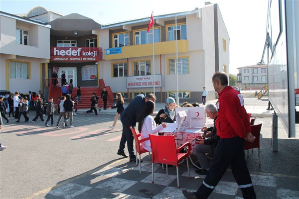Ayrıca okula Kızılay kan aracı davet edildi. Öğretmen, veli ve halkın katılımı ilke Kızılay’a kan bağışında bulunuldu. Bu anlamlı etkinliğe Aziziye Milli Eğitim Müdürü Sayın Nurullah YAVİLİOĞLU ve Kızılay Bölge Müdürü Dr. Abdullah ÜZER ziyarette bulunarak Hedef Koleji öğretmen ve öğrencilerini tebrik etti.