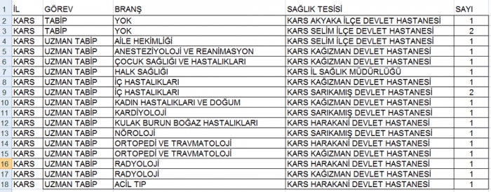 65. Hükümet UDH Bakanı ve Kars Milletvekili Ahmet ARSLAN ile Tarım Orman ve Köyişleri Komisyon Başkanı Kars milletvekili Prof.Dr.Yunus Kılıç girişimleri sonucunda; Sağlık Bakanlığınca Kars ve ilçelerine 16'si uzman, 19 doktor kadrosu tahsis edildiğini, hekimlerin 6 Mart'ta yapılacak kura sonucu belirleneceğini belirtti.