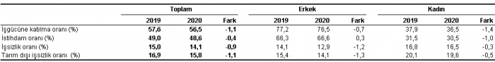 15-64 yaş grubunda işsizlik oranı bir önceki yılın aynı dönemine göre 0,9 puan azalışla %14,1, tarım dışı işsizlik oranı ise 1,1 puanlık azalışla %15,8 oldu. Bu yaş grubunda istihdam oranı 0,4 puanlık azalışla %48,6, işgücüne katılma oranı ise 1,1 puanlık azalışla %56,5 oldu.