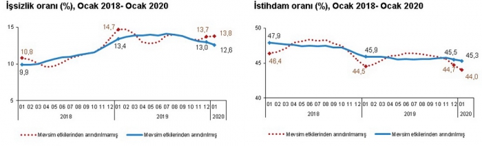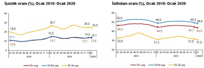 Ocak 2020 döneminde herhangi bir sosyal güvenlik kuruluşuna bağlı olmadan çalışanların toplam çalışanlar içindeki payını gösteren kayıt dışı çalışanların oranı, bir önceki yılın aynı dönemine göre 2,1 puan azalarak %31,0 olarak gerçekleşti. Tarım dışı sektörde kayıt dışı çalışanların oranı bir önceki yılın aynı dönemine göre 1,6 puan azalarak %20,9 oldu.