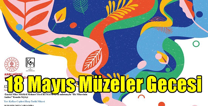 Avrupa Konseyi, UNESCO ve ICOM'un himayelerinde bu yıl Avrupa'da 18'incisi ülkemizde ise 17'ncisi kutlanacak olan "Avrupa Müzeler Gecesi" etkinliği kapsamında 18 Mayıs 2022 Çarşamba günü Kars Arkeoloji Müzesi ve Kafkas Cephesi Harp Tarihi Müzesi 17:00-23:00 saatleri arasında ücretsiz olarak ziyarete açık bulundurulacak.