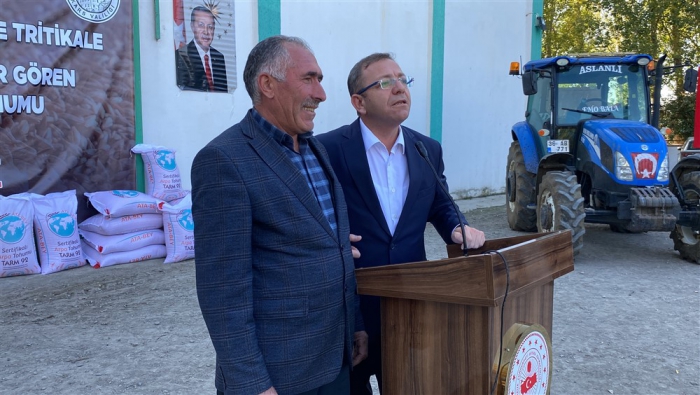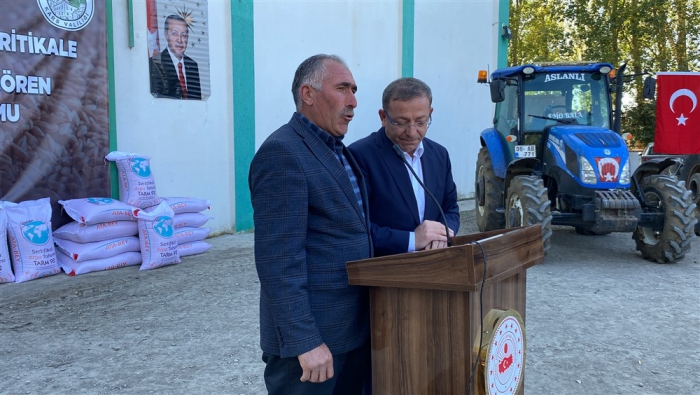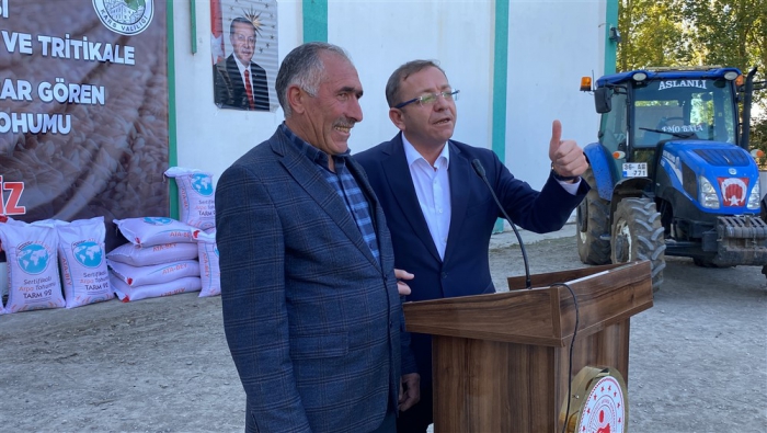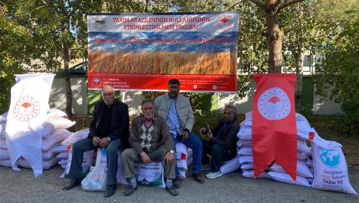 “2021 yılından beri Bakanlığımızca projelendirilen ve İl Müdürlüğümüzce yürütülen Tarım Arazilerinin Kullanımının Etkinleştirilmesi Projeleri kapsamında ise 2023 yılı 2. Etabı olarak gerçekleştirdiğimiz Güzlük Buğday Üretiminin Yaygınlaştırılması ve Dane Tritikale Üretiminin Yaygınlaştırılması Projeleri ile İlimiz genelinde 430 Ton Bezostaja çeşidi Buğday ve Ümran hanım çeşidi 156,6 Ton Tritikale tohumluğu alınarak % 50 Çiftçi Katkılı olarak üreticilerimize dağıtımı gerçekleştirilmektedir. Bu iki proje kapsamında 17.200 dekar alanda Buğday ve 6.264 dekar alanda Tritikale üretimi yapılacaktır. Buğday Projemizin toplam bedeli 6.300.000,00 TL, Tritikale Projemizin toplam bedeli ise 2.250.000,00 TL’dir. Genel olarak 13.10.2023 tarihinde ki Program kapsamında İlimizin Sertifikalı hububat yetiştiriciliği anlamında 15.335.000,00 TL kaynak aktarımı sağlanmıştır.”