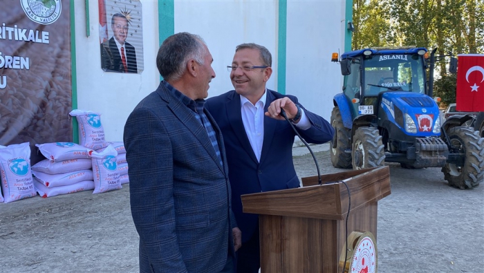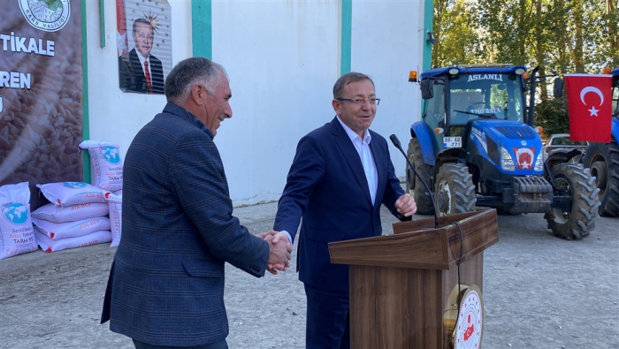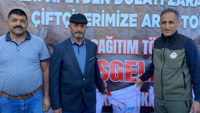 Tarım ve Orman Bakanlığı’nın Tarım Arazilerinin Kullanımının Etkinleştirilmesi Projesi ve Cumhurbaşkanlığı Acil Yardım Ödeneği kapsamında Kars’ın Akyaka ilçesinde afetten zarar gören çiftçilere buğday, trikale ve arpa tohumu dağıtım töreni düzenlendi.