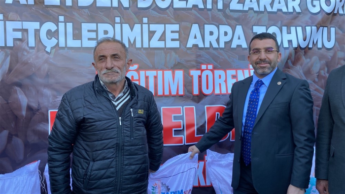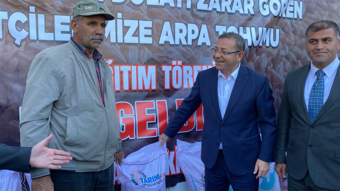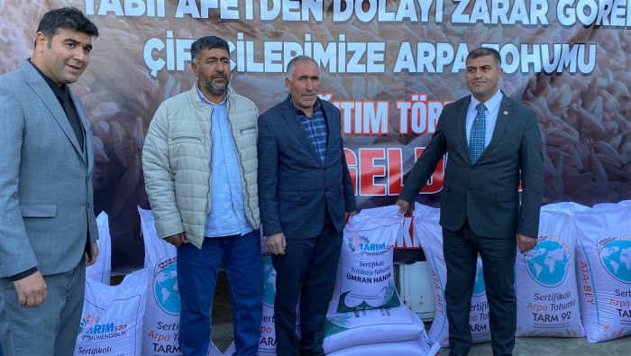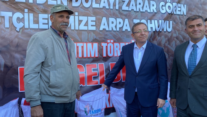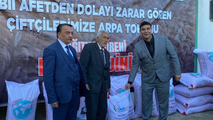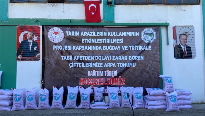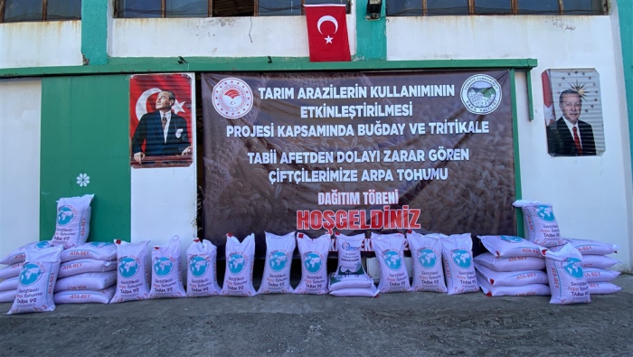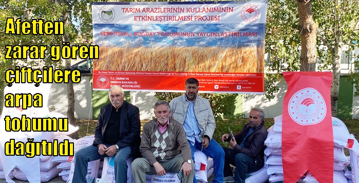 Afetten zarar gören çiftçilere arpa tohumu dağıtıldı