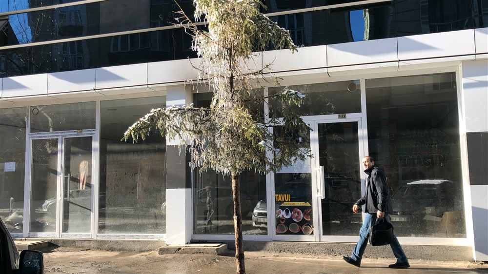 Gece saatlerinde soğuyan havanın gündüz saatlerinde yerini güneşli havaya bırakmasıyla eriyen kar suları çatı saçakları altındaki ağaçları adeta buza çevirdi. Buz sarkıtları bu defa ağaçların dallarından sarkmaya başladı. İlginç ve renkli anlara sahne olan buzlu ağaçlar vatandaşlarında dikkatini çekiyor.