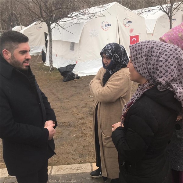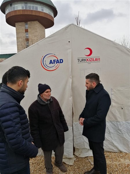 Gençlik Kolları Başkanı Fatih Bayrambey, “Ardından gönüllü Kızılay çalışmamalarına yardımda bulunarak kurulan çadır kentlerdeki depremzede vatandaşlarımızı ziyaret ettik.” dedi.