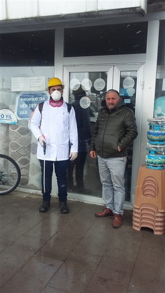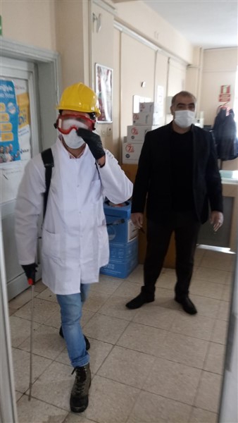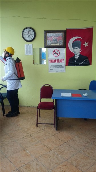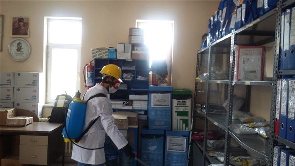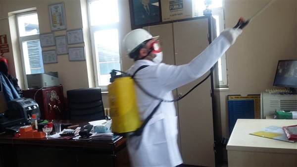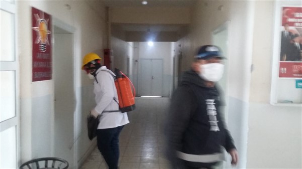İlçede başlatılan dezenfekte çalışmalırında; ATM’ler, kaldırımlar, belediye birimleri, kurum binaları tek tek temizlendi.