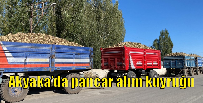Kars’ta pancar üretimin en fazla yapıldığı Akyaka ilçesinde alım kampanyasının başlamasıyla birlikte uzun traktör kuyrukları oluştu.
