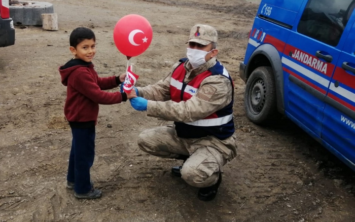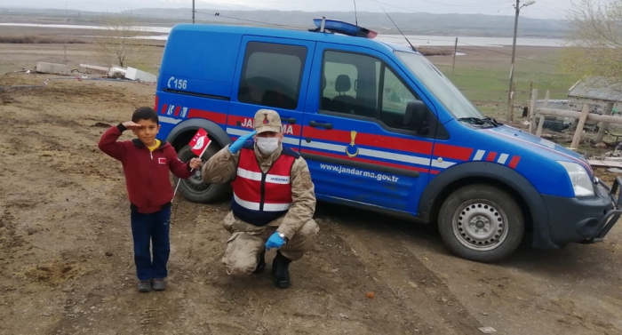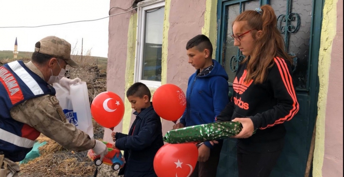 Kars İl Jandarma Komutanlığınca, Akyaka İlçesi Esenyayla Köyünden Jandarma 112 Destek Hattını arayarak 23 Nisan kutlamaları için bayrak ve balon isteyen 9 yaşındaki Yaren Demir’in köyüne gitti.