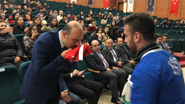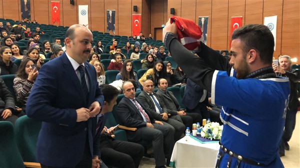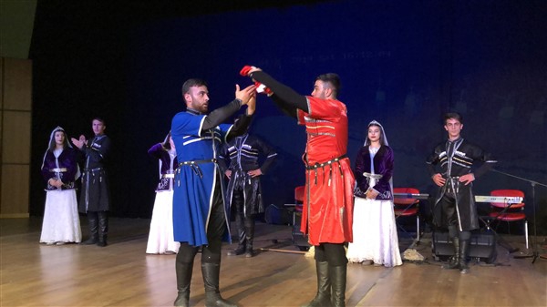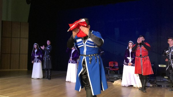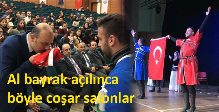 KAÜ Halk Dansları Topluluğunun Kafkas gösterisi renkli görüntülere sahne oldu. Ekibin gösteri sonunda 10. Yıl Marşı eşliğinde Türk Bayrağı açması salonu coşturdu Salondakiler ayağa kalkarak alkışlar eşliğinde marşa eşlik etti. Marş bitiminde ise gösteri ekip şefi şanlı bayrağımızı öperek Vali Yardımcısı Mehmet Zahid Doğu’ya teslim etti. Doğu da önce ceketinin düğmelerini ilikledi ve büyük bir saygıyla eğilerek bayrağı öperek teslim aldı.