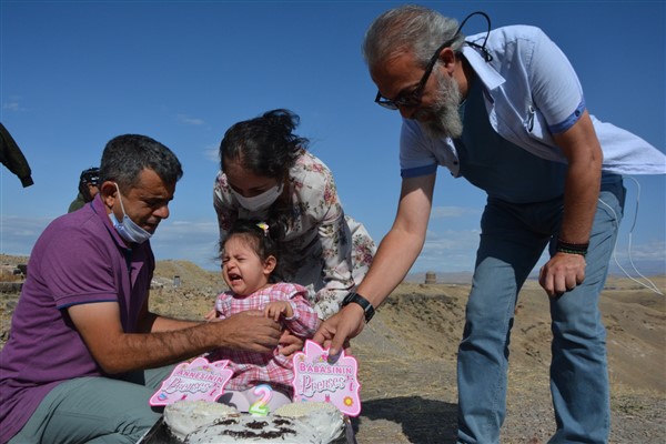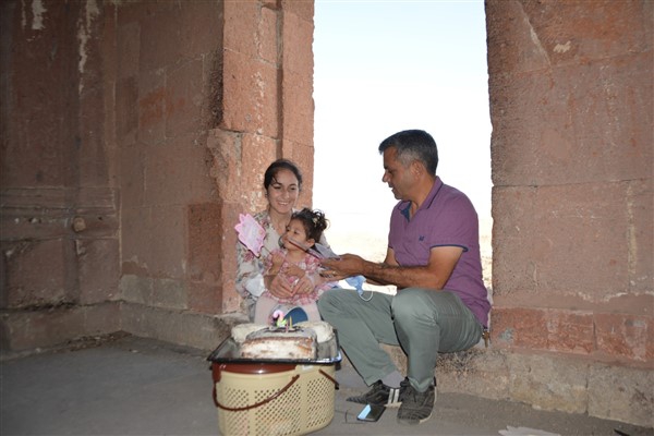 Gazeteci Durmuş’un arkadaşları 2 yaşını dolduran Ani için Ani Ören Yeri’nde pasta keserek, sağlıklı ve mutlu bir ömür diledi.