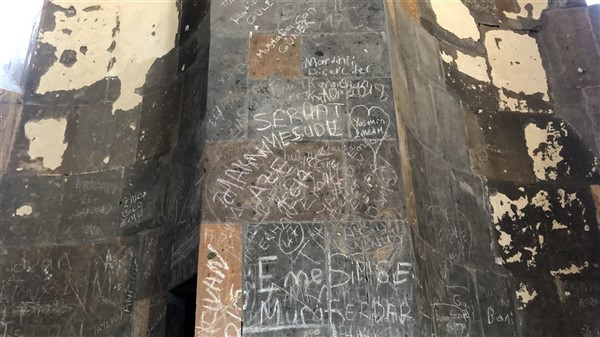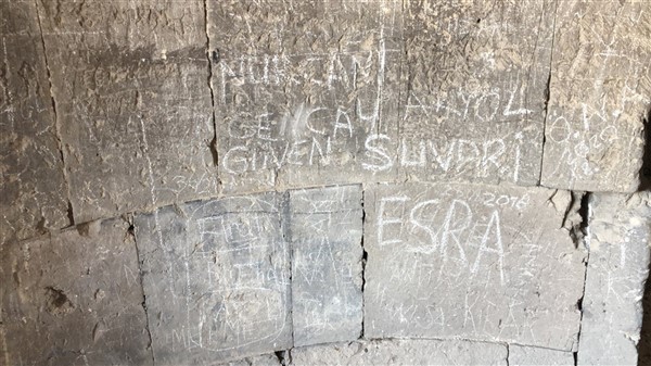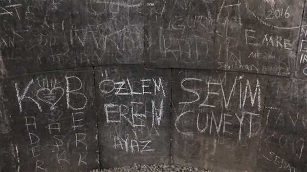 Unesco Dünya Kültür Mirası Listesinde 16. sırada yerini alan Ani Ören Yeri’ndeki tarihi yapıtların duvarları adeta ilanı aşka döndü. Ziyaretçilerin anı bırakmak için tebeşirlerle yazıp şekiller çizdiği bazılarının da taşları kesici aletlerle kazıyarak isimlerini veya sevdiklerinin isimleri yazdıkları yazılar çirkin görüntüler oluşturdu.