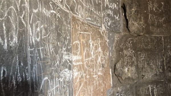 Dünyanın gözünün olduğu Ani Ören yerindeki tarihi yapıtlar ne yazık ki bazı ziyaretçiler tarafından duvarlarına yazılan ve kazılan yazılarla çirkin görüntülere sahne oluyor. Terhis olanların, evlenenlerin, nişanlananların ziyaret ettikleri tarihlerin yazıldığı duvarlarda kalp resimlerinin bolluğu da dikkat çekiyor. Boya ve tebeşirlerle yazılan yazıların yanında bazılarının ise taşları kesici aletlerle oyarak isimlerini yazdığı görülüyor.