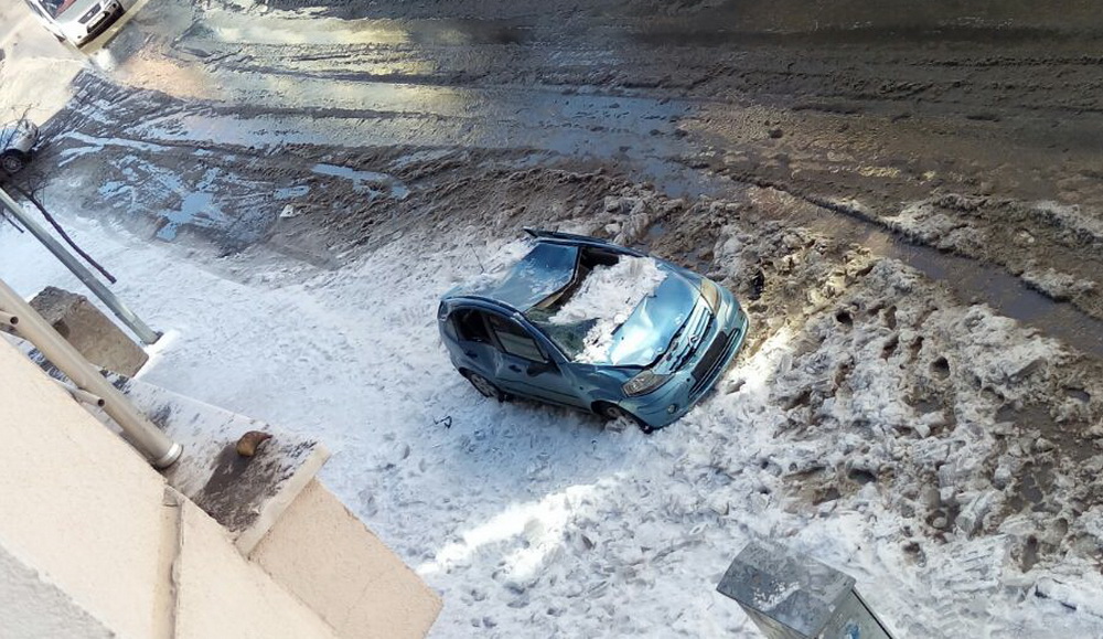 Yayaların da zarar gördüğü buz kütleleri geçtiğimiz günlerde bir aracın üzerine düştü. Park halindeki araç kullanılamaz hale geldi.