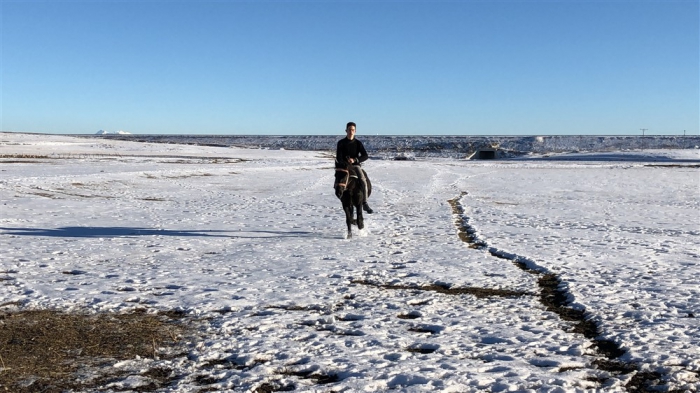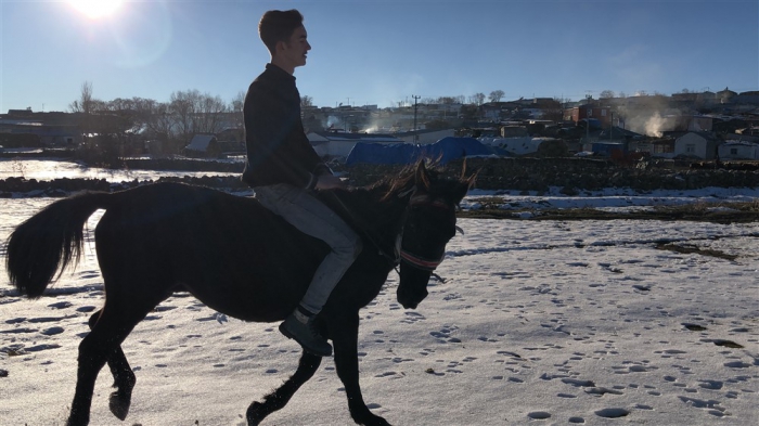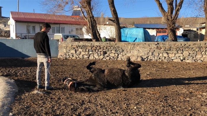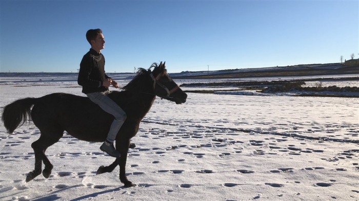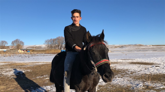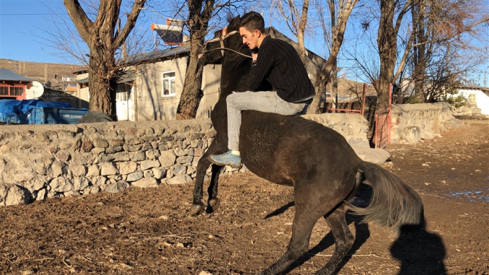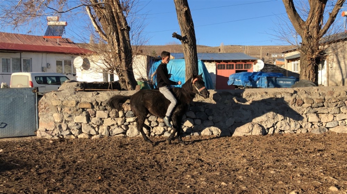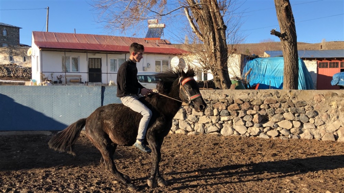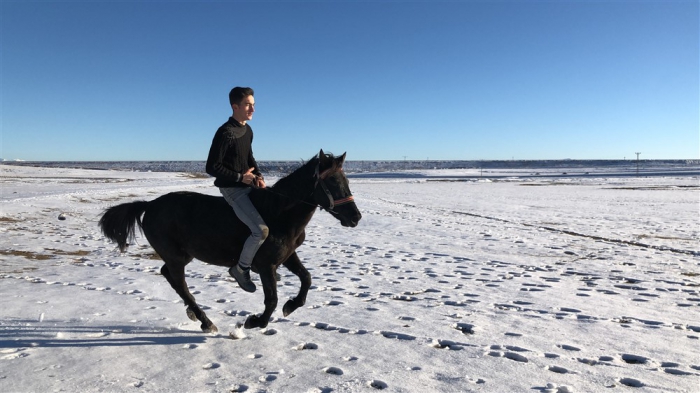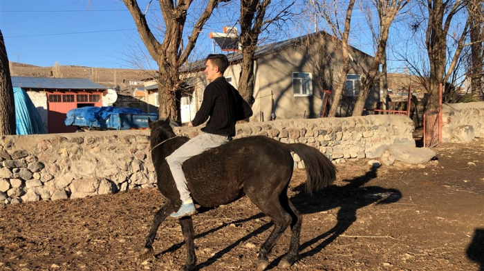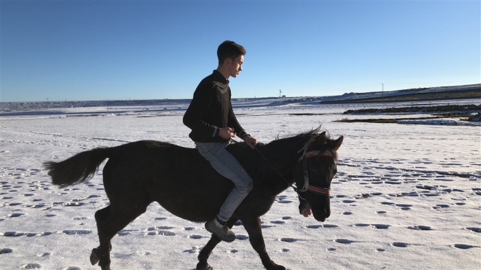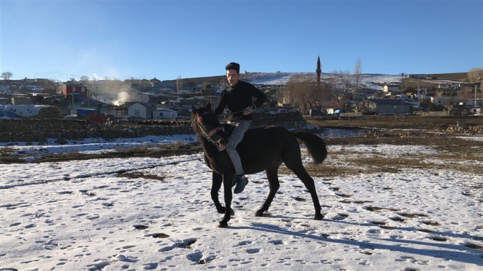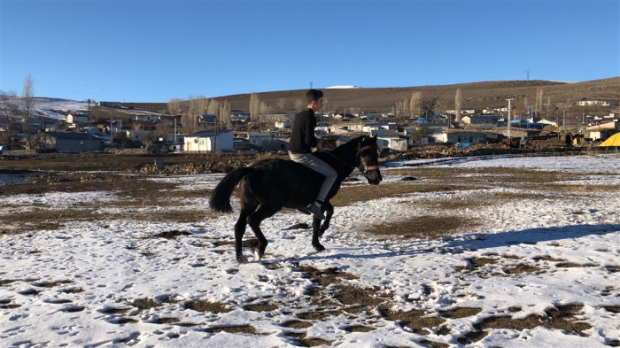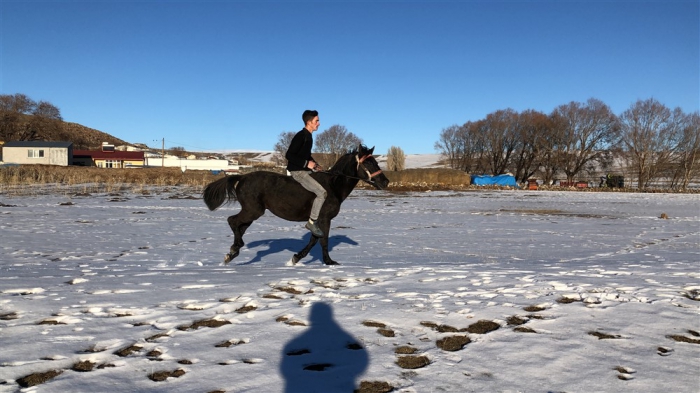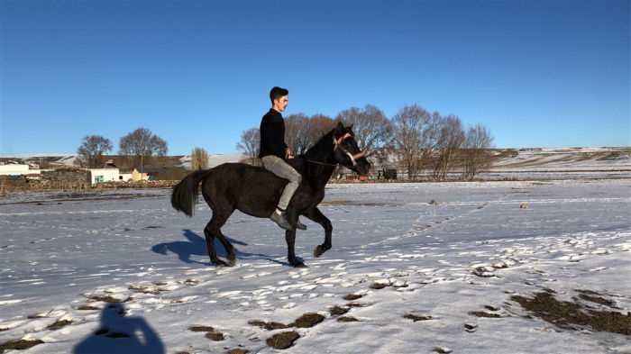 Mert Yıldırım, “Atın açılması için birlikte antrenman yapıyoruz. Yaz-kış at biniyorum. Atımla birlikte gezintiye çıkıyoruz. Karlı zeminde da at binmek oldukça keyifli.” dedi.