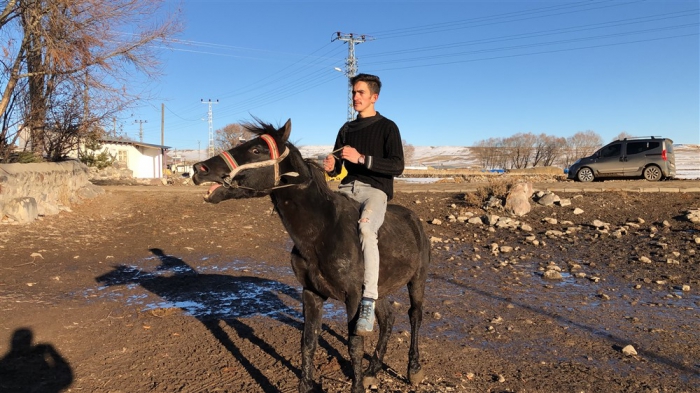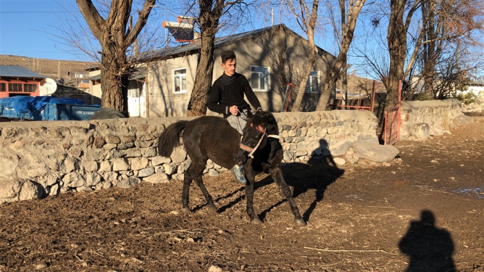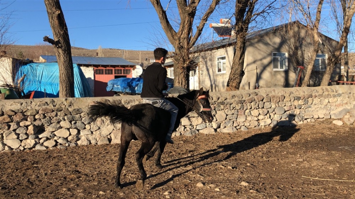 Arpaçay İlçesi’nin Güvercin köyünde de Mert Yıldırım, atıyla köy turu attı. Güneşli havanın tadını çıkaran Mert, ata binmekten ve atıyla gezintiye çıkmaktan büyük keyif aldığını söyledi.