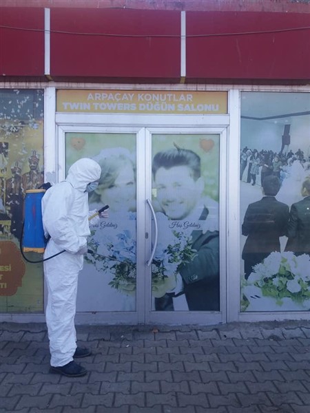 Tüm dünyayı etkisi altına alan COVID-19 salgınına karşı yurt genelinde başlatılan mücadele sürerken, Arpaçay Belediyesi’nin dezenfeksiyon çalışmaları aralıksız devam ediyor. İlçede ilaçlanmadık yer bırakmamak için yoğun şekilde çalışan dezenfeksiyon ekipleri, camiler, ilçe meydanı, AVM ve iş merkezlerinin yanı sıra kamuya açık ortak kullanım alanlarının neredeyse tamamını dezenfekte etti.