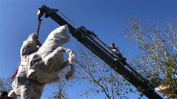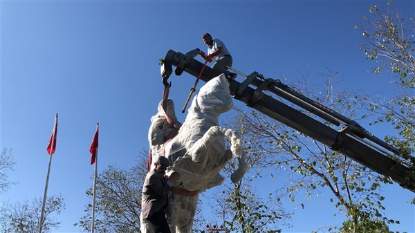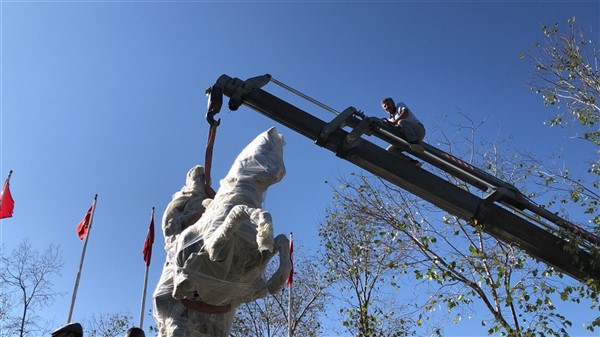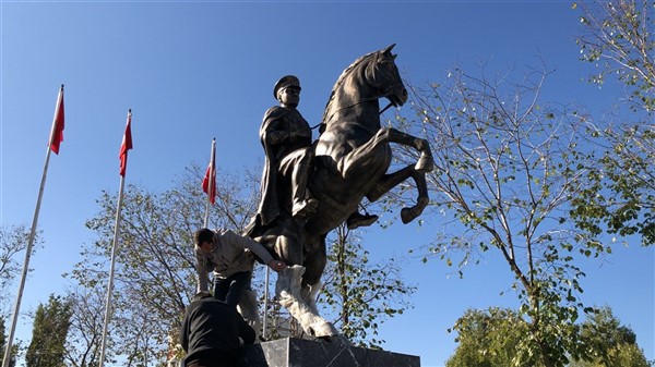 Kars’ın Arpaçay İlçesi’nde Cumhuriyet Meydanı Atatürk Parkına Yeni Atatürk heykeli dikildi.