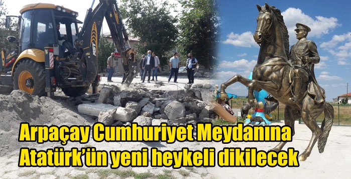 Arpaçay Cumhuriyet Meydanında bulunan Gazi Mustafa Kemal Atatürk Anıtımız, ilçemizde devam eden park-bahçe yapım çalışmaları nedeniyle kaldırılarak, Anıtın yerinde yapılacak çalışmalar tamamlandıktan sonra Ankara Artil Sanat Heykel Atölyesinde yapımı devam eden görseldeki anıt konulacaktır.