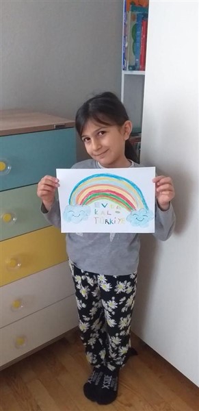 Kars/Arpaçay Atatürk İlkokulu 2/A Sınıfı öğrencilerinden hepimize çok anlamlı sosyal mesajları var. Kendilerinin yaptıkları gökkuşağı resimlerini evlerinin camlarına yapıştırmışlar. Teşekkürler çocuklar