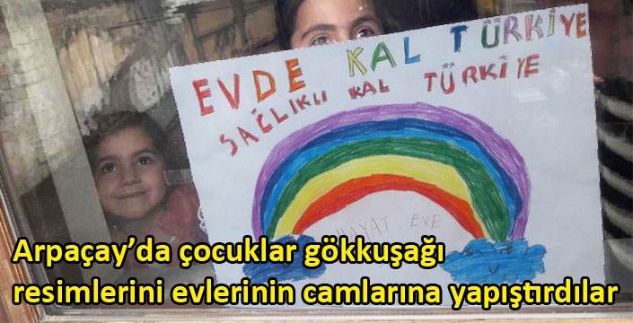 Arpaçay’da çocuklar gökkuşağı resimlerini evlerinin camlarına yapıştırdılar