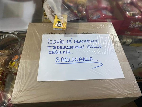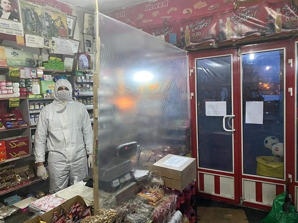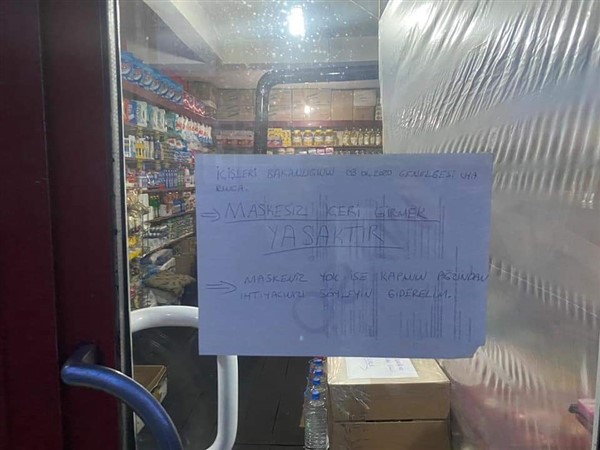 Müşterilerle arasına naylon çeken Selim Altay, “COVİD-19 alacağımız tedbirlerden güçlü değildir. SAĞLICAKLA” şeklinde dikkat çeken bir de yazı yazdı. Ayrıca, İçişleri bakanlığının 03.04.2020 genelgesi uyarınca ‘Maskesiz içeri girmek yasaktır’ diyerek, “Maskeniz yok ise kapının ağzından ihtiyacınızı söyleyin giderelim” ricasında bulunmayı da ihmal etmedi.