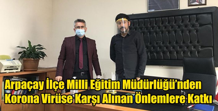 Arpaçay İlçe Milli Eğitim Müdürü Metin Avcı ve Arpaçay Şehit Engin Yılmaz Anadolu Lisesi Bilişim Teknolojileri Öğretmeni Ali Karadağ, sağlık çalışanlarını ve kolluk kuvvetlerini unutmayarak Arpaçay İlçe Jandarma Komutanlığını, Arpaçay İlçe Emniyet Amirliğini, Arpaçay Devlet Hastanesini ve Arpaçay Toplum Sağlığı Merkezini ziyaret etti. Ziyarette ilk etapta üretilen 20 adet siperlik yüz maskesini kurum çalışanlarına teslim etti. Haftada 20 adet üretilen maskeler önümüzdeki haftalarda da kolluk kuvvetleri ve sağlık çalışanlarına teslim edilecek.