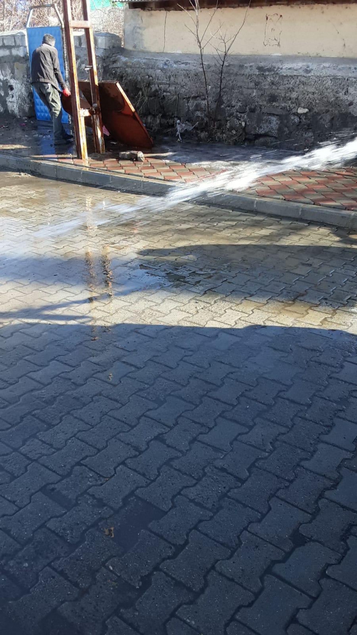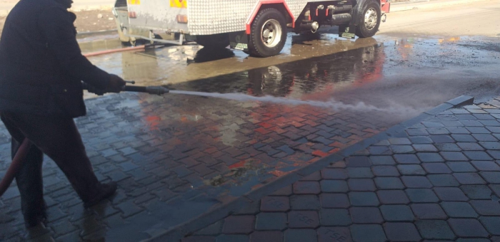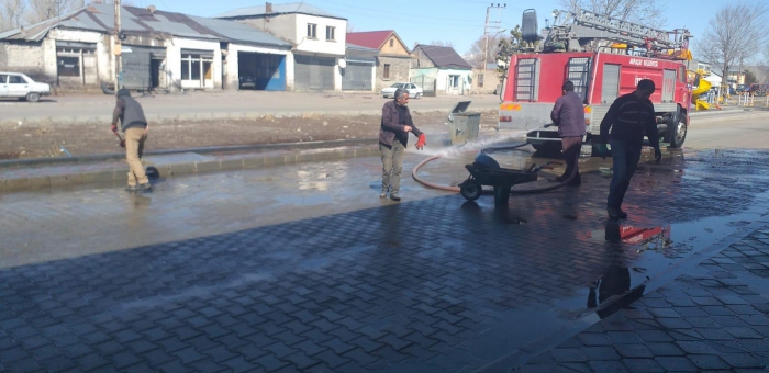 Arpaçay belediyesi, karların erimesiyle birlikte hummalı bir temizlik çalışması başlattı. İtfaiye ekipleri gün boyu yol ve kaldırım yıkadı. İşçiler bir yandan hortum tutup suyla temizlerken bir yandan da süpürge ve küreklerle çer çöp toplandı.