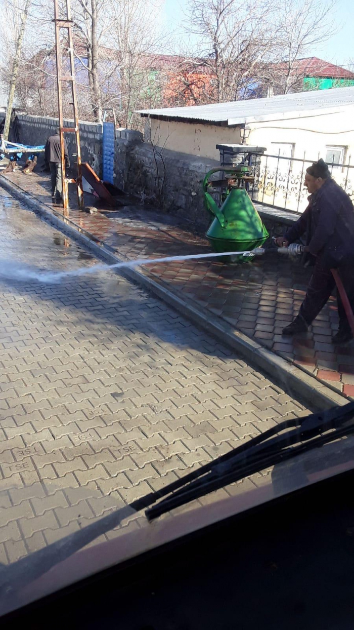 Kars’ın Arpaçay ilçesi tepeden tırnağa yıkandı. Belediye ekiplerinin hummalı çalışmasıyla ilçe çamur ve tozdan arındırıldı.