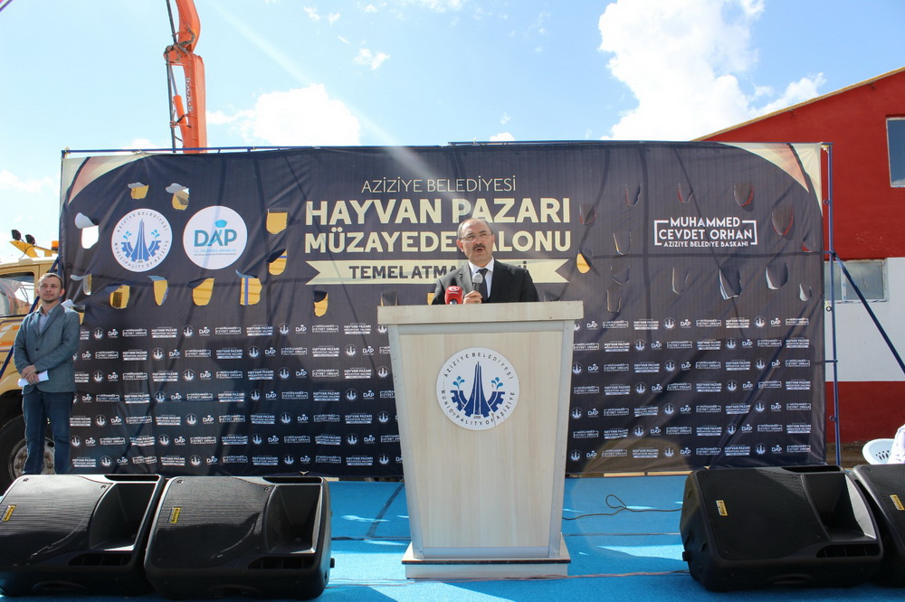 Temel atma töreninde son olarak konuşma yapan Erzurum Valisi Seyfettin Azizoğlu, ise hayvan borsasının yıllardan beri ihtiyacının hissedildiğine vurgu yaptı. Bu gecikmeye rağmen büyük bir eksikliğin tamamlandığını dile getiren Vali Azizoğlu, “Erzurum Doğu Anadolu’nun en büyük hayvancılık potansiyeline sahip bir şehir olmasına rağmen geçen yılla kadar ruhsatlı hayvan satış pazarı yoktu. Geçtiğimiz yıl Büyükşehir Belediyesi, DAP İdaresi, İl Tarım Müdürlüğü, Damızlık Koyun Keçi Yetiştiriciler Birliği ile beraber Erzurum’un ilk resmi ruhsatlı hayvan pazarını burada açtık. Bu hayvan pazarının bugüne kadar Erzurum’da olmaması şehir için büyük bir eksiklikti. Bu eksikliği gidermek Erzurum hayvancılığına yapılacak en büyük katkıydı. Emeği geçen herkese teşekkür ediyorum.” şeklinde konuştu