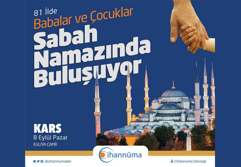 Cihannüma Dayanışma ve İşbirliği Derneği Resmi twitter hesabından yapılan, ‘‘8 Eylül Pazar 81 İlde Babalar ve Çocuklar Sabah Namazında Buluşuyor. Kuşaklar arasındaki bağ güçlensin. Büyükler örnek alınsın, küçüklere örnek olunsun. Tut çocuğunun elinden, tut babanın elinden gel. Bu güzellik kaçmaz.'' Duyurusu birçok Karslı vatandaş tarafından paylaşıldı. Karsta Babalar ve Çocuklar Sabah Namazında Buluşuyor'' etkinliği Merkez Evliya Camisinde gerçekleştirilecek.