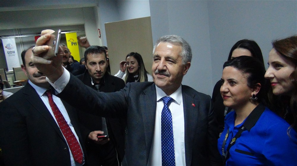 PTT Kars İl Müdürlüğü binasında hizmet veren PTT Çağrı Merkezi'ni ziyaretinde de kendisine gösterilen ilgiden son derece memnun kalan Bakan Arslan, Çağrı Merkezi çalışanlarının fotoğraf çektirme isteklerini de geri çevirmedi.