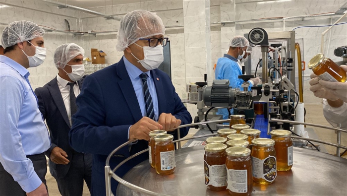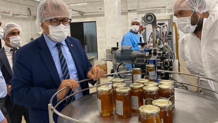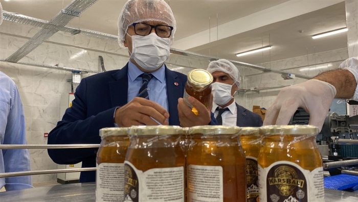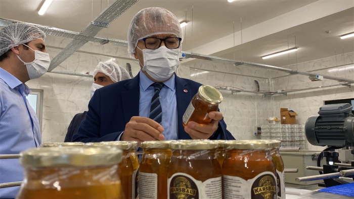 Tarım ve Orman İl Müdürü İbrahim Altıntaş, “Arıcılar Birliği’nin dolum tesisini gezdik. Bu tesisin şu an hali hazırda çalışıyor olması ilimiz için, Kars’ımız için bir kazanımdır. Biliyorsunuz ııı bizim kaşarımız meşhur, kazımız meşhur, bunun yanında kavılcamız meşhur, balımız da meşhur ki Kars balı özel bir baldır. Rakımı yüksek yaylalarda arıcılarımız balı üretmekteler. Hemen hemen yaklaşık l genelinde 1400-1500 civarında üreticimiz var ki bunlardan 100’e yakını da faal arıcılık yapmaktalar. Yılda hemen hemen 2 bin 500 ton civarında bir bal üretimimiz var. Coğrafi işaret de aldık. Coğrafi işaretli Kars balı bugün bizim için çok önemli. İnşallah bu dolum tesislerinin sayısı artar. Bugün bu tesisin kapasitesi günlük 3 bin ton civarında. İnşallah daha büyük tesislerimiz olur, daha fazla üretimler yaparız. Arıcılarımızın sayısının da artmasını bekliyoruz. Bu sene tabii dönem dönem yağan yağmurlar nedeniyle biraz rekoltede düşüklük oldu. Çünkü geceleri don yaptı, ondan dolayı bir düşüklüğümüz var. İnşallah önümüzdeki yıllarda bu tür sıkıntılar yaşamayız ve üretimlerimiz daha fazla olur.” dedi.