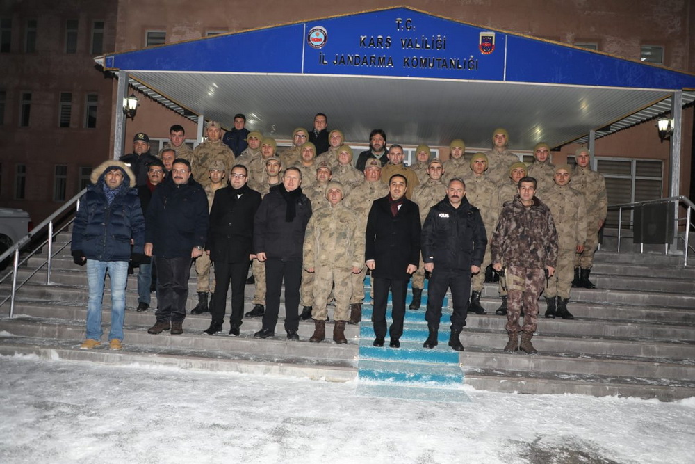 Kars Valisi Türker Öksüz, İl Jandarma Komutanlığını ziyaret ederek harekat merkezinde incelemelerde bulundu ve yılbaşı gecesinde görev yapan personele başarılar diledi ve Mehmetçiklere çikolata ikram etti.
