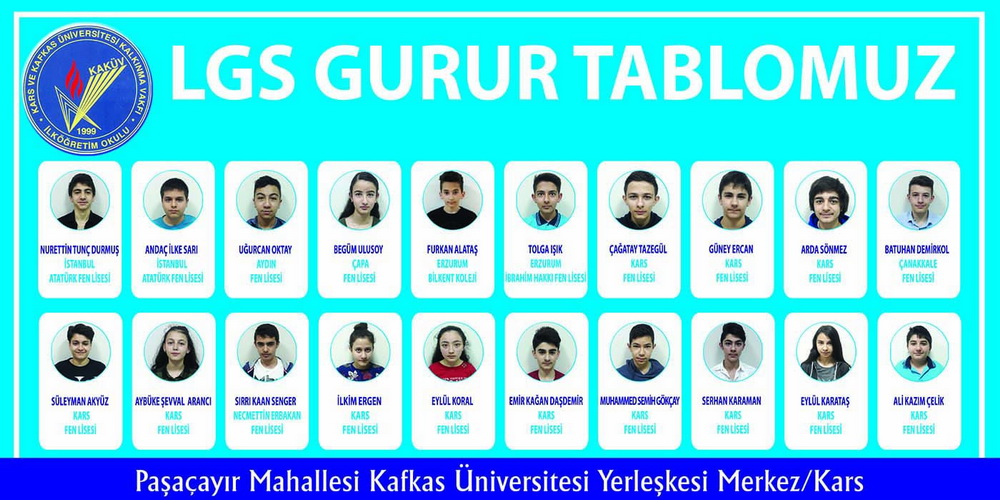 Kars ve Kafkas Üniversitesi Kalkınma Vakfı Özel İlkokulu-Ortaokulu 2017-2018 eğitim öğretim yılında yapılan LGS sınavında başarısıyla göz doldurdu. Nitelikli liselere yerleşmede % 66 oranını tutturan KAKÜV Türkiye ortalamalarının çok üzerinde bir başarı sergiledi.