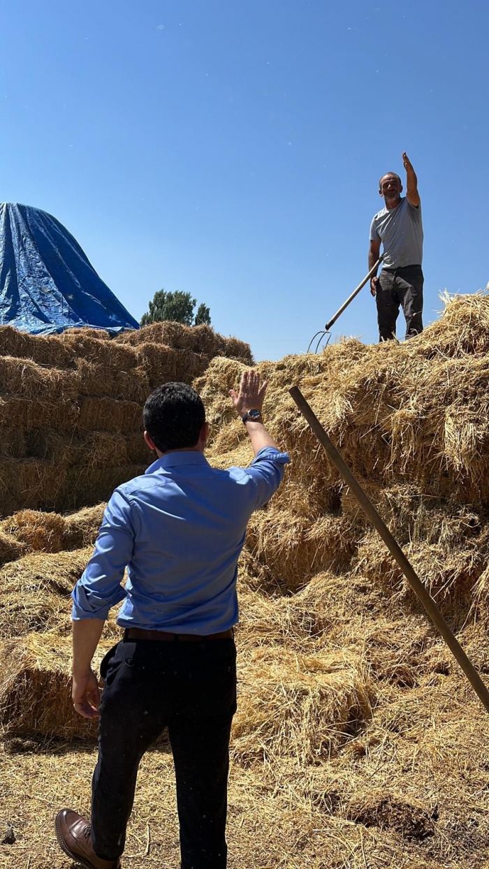 Hasat çalışmalarını sürdüren çiftçilerle birlikte patos vuran başkan Adıgüzel, “Çiftçilerinizin hoş muhabbetlerine ortak olup, dertlerini ve taleplerini dinledik. Emeğinin ve ekmeğinin peşinde olan tüm çiftçilerimize hasatlarının bereketli olmasını diliyor ve kolaylıklar diliyoruz. Geleceğimizin teminatı olan Bozkurt bakışlı çocuklarımızın o tertemiz kalplerine misafir olduk” ifadelerini kullandı.