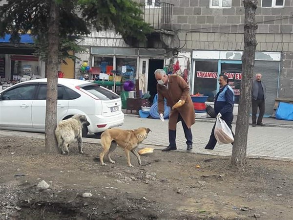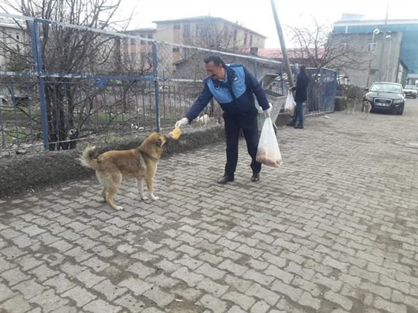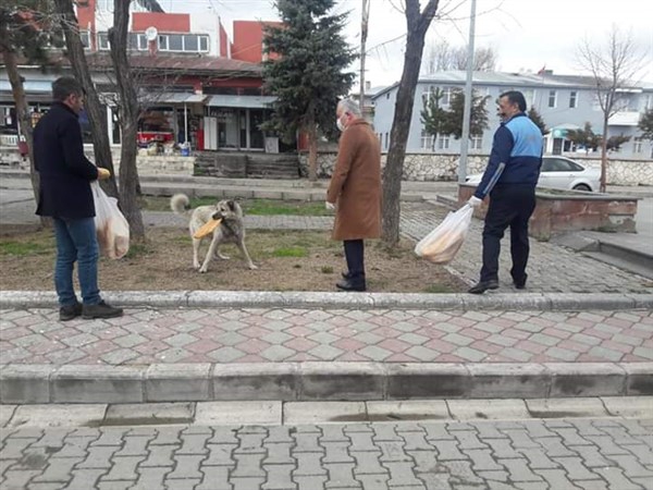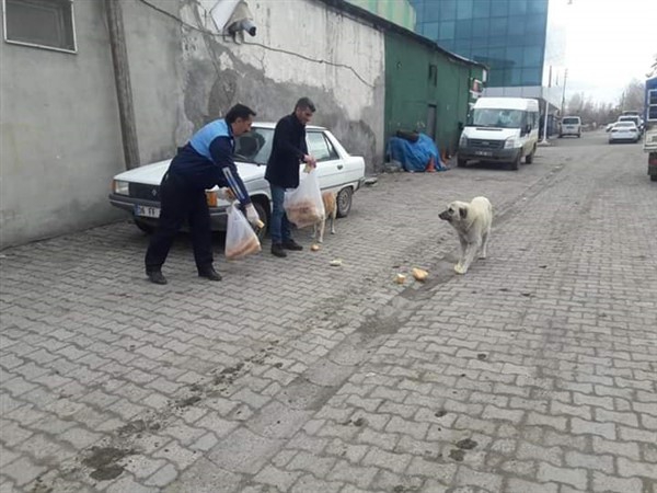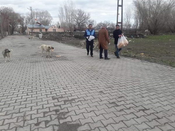 Dünyayı etkisi altına alan Koronavirüs nedeniyle yiyecek bulmakta zorluk çeken sokak hayvanlarına Arpaçay Belediye Başkanı Erçetin Altay yiyecek dağıttı.