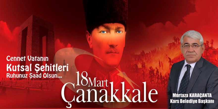 Kars Belediye Başkanı Murtaza Karaçanta’nın, 18 Mart Şehitleri Anma Günü ve Çanakkale Deniz Zaferi’nin 103. yıldönümünü dolayısıyla bir mesaj yayınladı.