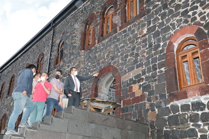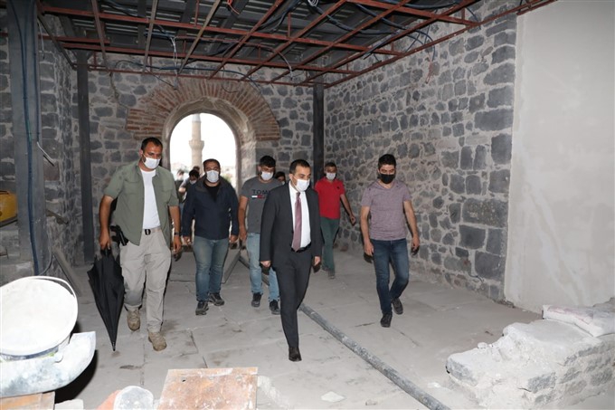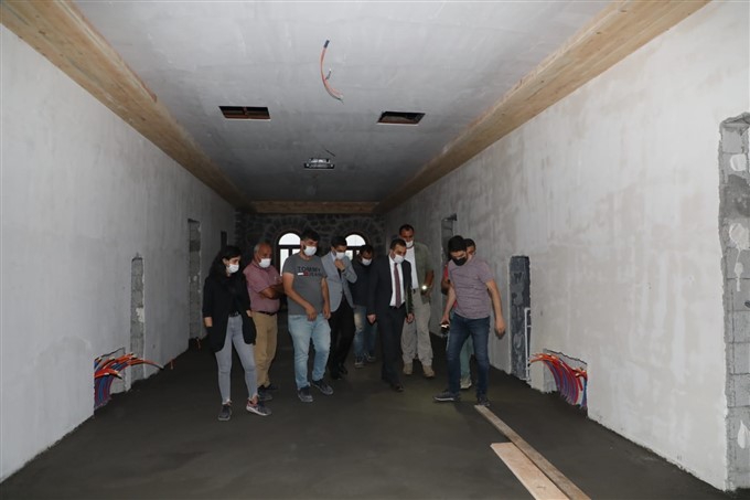 Kars Valisi Türker Öksüz, restore edilerek turizme kazandırılacak olan tarihi miras Beylerbeyi Sarayı'nda incelemelerde bulunarak, yapılan çalışmaların son durumuyla ilgili yetkililerden bilgi aldı.