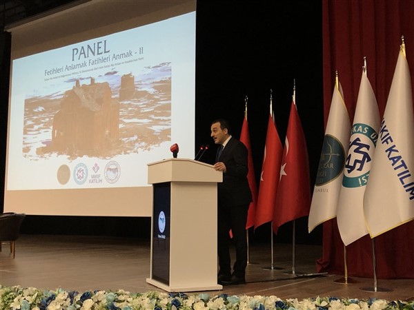 Konuşmalardan sonra Sultan Alparslan’ın doğumunun 990’ncı yıldönümünde Ebü’l- Fetih Sultan Alparslan ve Anadolu’nun Fethi nedeniyle düzenlenen panele geçildi. Oturum başkanlığını Doç. Dr. Alparsan Yüce’nin yaptığı panelde Prof. Dr. Cihan Piyadeoğlu ve Doç. Dr. Yaşar Kop birer konuşma yaptı.