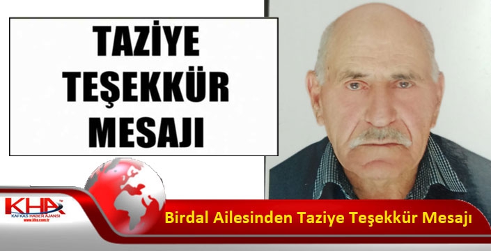 "Değerli aile büyüğümüz, babamız Hanlar Birdal'ın vefatı vesilesiyle; tüm eş, dost, akraba ve hemşerilerimiz gerek cenaze törenine ve gerekse taziyemize gelerek veya telefonla arayarak bizleri bu acı günümüzde yalnız bırakmadılar.