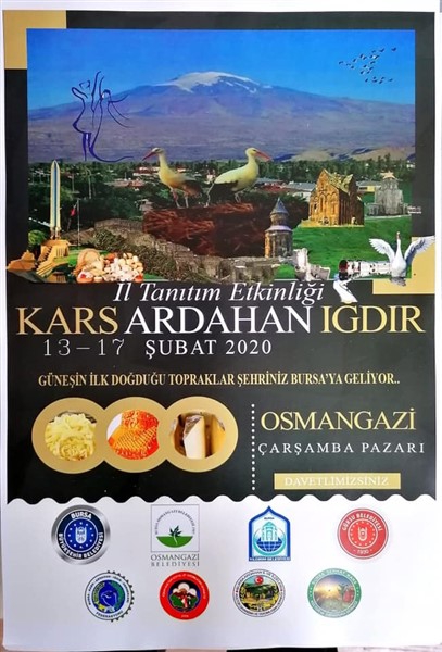 Kars Ardahan ve Iğdır Derneklerinin organize ettiği ve Bursa Büyükşehir, Osmangazi, Yıldırım ve Gürsu Belediyelerinin desteklediği tanıtım günleri açılışı Osmangazi Belediyesi Çarşamba Pazarı kapalı alanında yapıldı. Yöresel ürünlerin sergilendiği stantlar 13-17 Şubat günlerinde halka açık olacak.