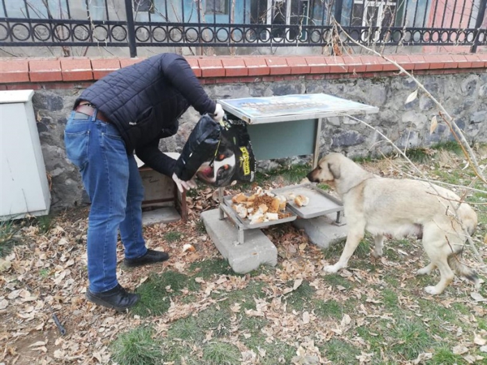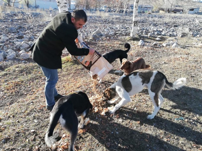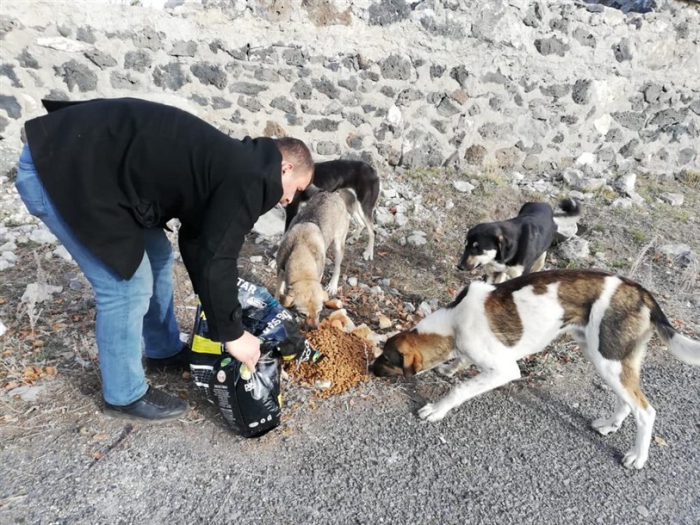 Kars Belediyesi, şehrin ücra noktalarında ve insanların ulaşamadığı alanlarda kış şartlarına maruz kalan, sahipsiz sokak hayvanlarına, kuru mama ve yemekle beslenme desteği veriyor.