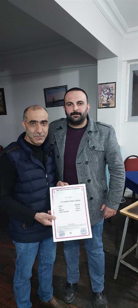 Kars Kahveciler ve Otelciler Odası Başkanı Yılmaz, yeni fiyat tarifelerini esnafları ile paylaştı. 2022 Yılında zam tarifesi uyguladıklarını belirten Kahveciler Odası Başkanı Onur Yılmaz, “Pandemi sonrası bir türlü toparlanamayan esnaflarımıza bir nebze de olsa zam ihtiyacı doğmuştur. Oda yönetimi ve esnaflarımızın talepleri doğrultusunda 2023 yılı fiyat tarifesinde; Çay, Türk Kahvesi, Demlik Çay ve Oralet gibi içeceklere yeni zam tarifesi uygulandı.” oedi.